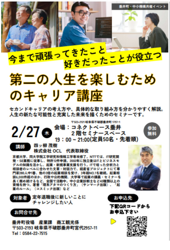 コネクトベース垂井にてセカンドキャリアセミナーを開催します。(2月27日) - 岐阜県垂井町公式ホームページ(産業課)