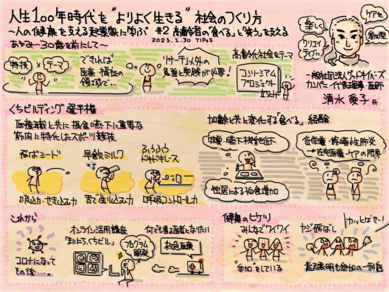 今回は人生100年時代を”よりよく生きる”社会の作り方シリーズのグラレコをさせていただきました。